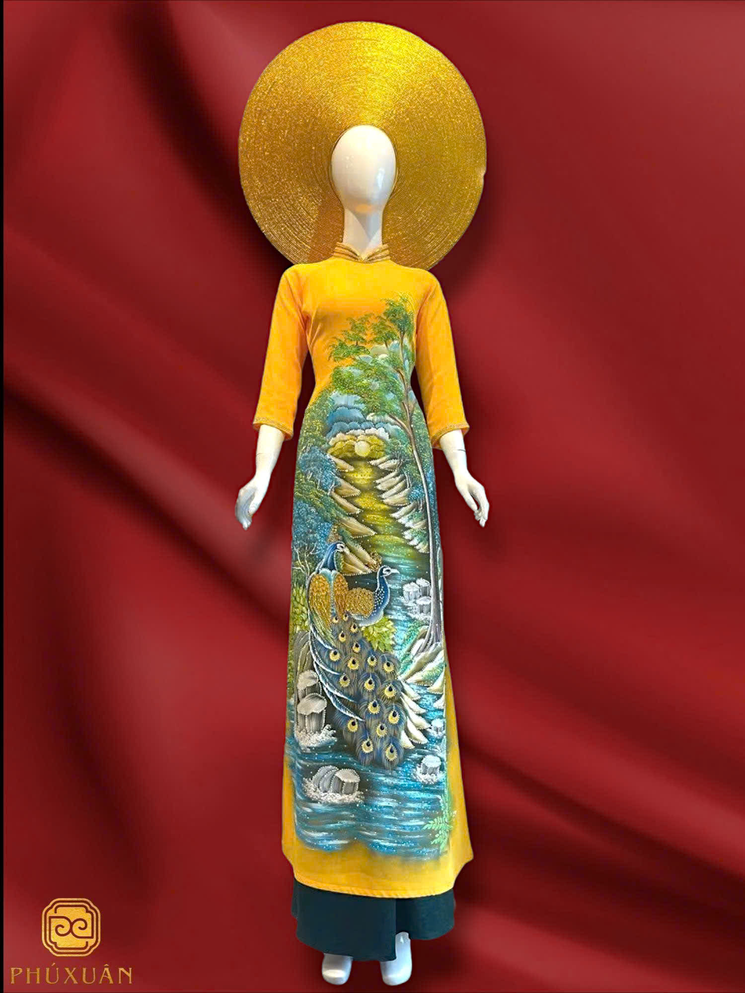 Lấy cảm hứng từ vẻ đẹp thiên nhiên mùa hạ, chiếc áo dài vẽ tay “Hạ Vân” mang đến cảm giác nhẹ nhàng và tinh khôi như áng mây trôi trên nền trời xanh. Từng nét cọ được họa sĩ khắc họa uyển chuyển, tái hiện hình ảnh hoa cỏ, mây trời và ánh nắng mùa hạ bằng gam màu trong trẻo, mềm mại. Trên nền lụa tơ cao cấp, mỗi chi tiết đều toát lên vẻ thanh thoát và sự sống động của thiên nhiên, giúp người mặc như hòa mình vào không gian trong lành, tươi sáng. “Hạ Vân” không chỉ là một chiếc áo dài, mà là bức họa của cảm xúc và tâm hồn Việt – dịu dàng, tinh tế và đầy thi vị.